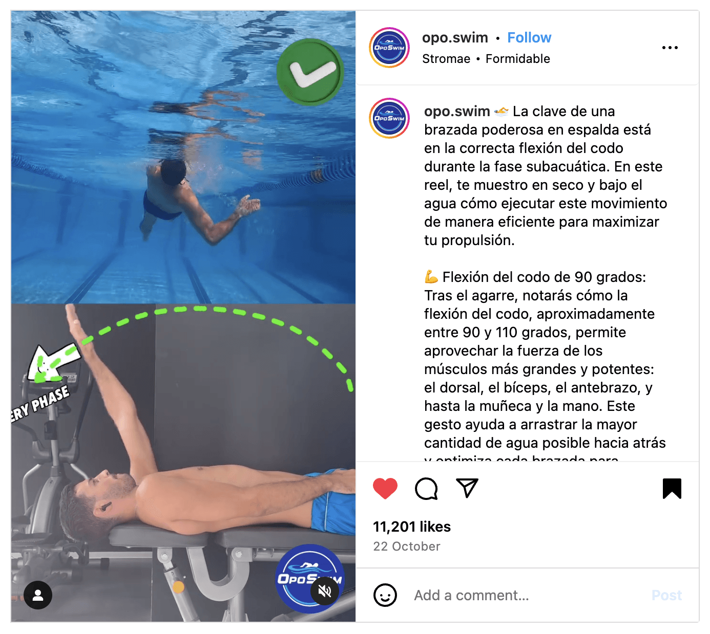 🏊♂️ La clave de una brazada poderosa en espalda está en la correcta flexión del codo durante la fase subacuática. En este reel, te muestro en seco y bajo el agua cómo ejecutar este movimiento de manera eficiente para maximizar tu propulsión.