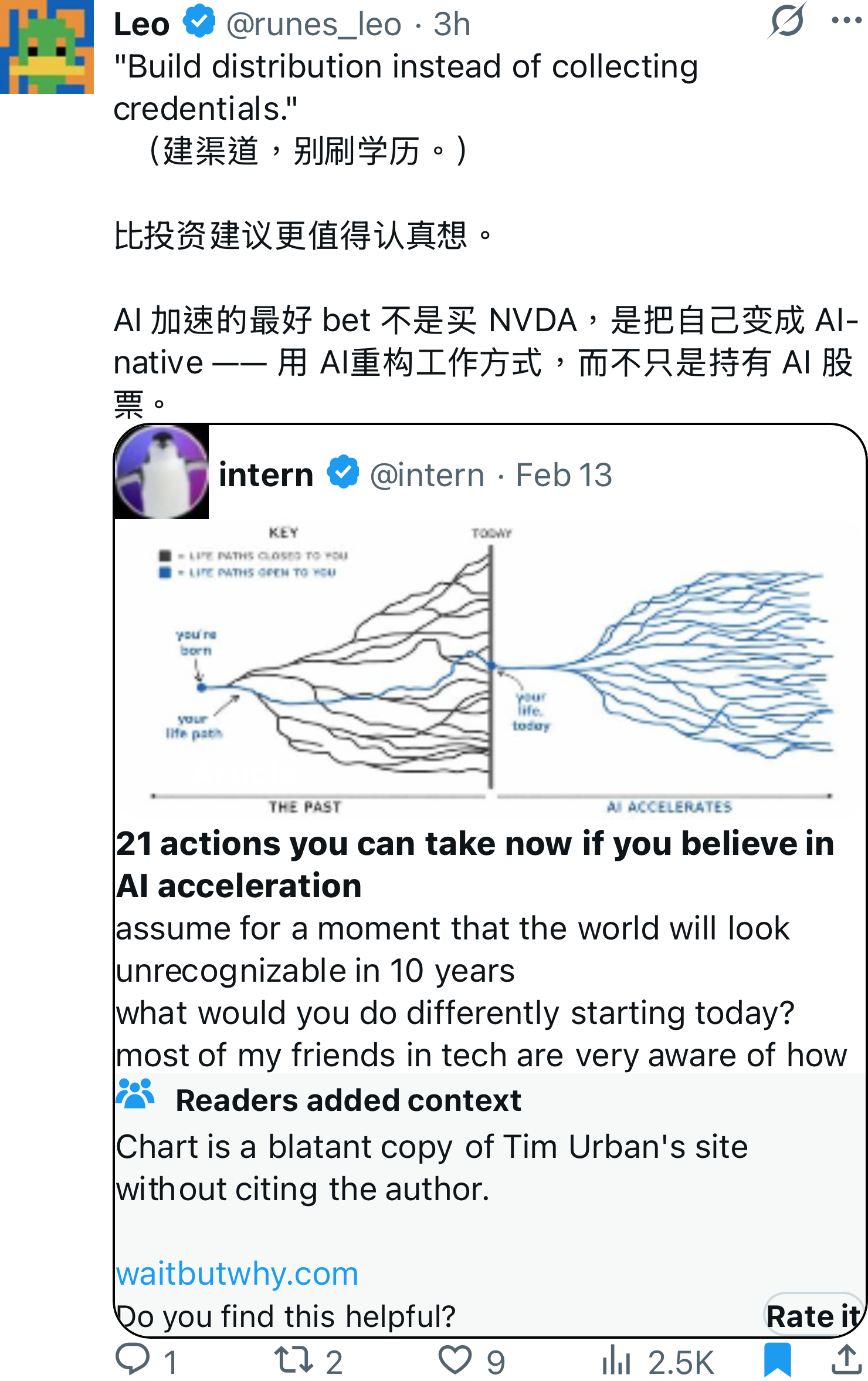 AI 加速的最好 bet 不是买 NVDA,是把自己变成 AI-native —— 用 AI重构工作方式,而不只是持有 AI 股票。