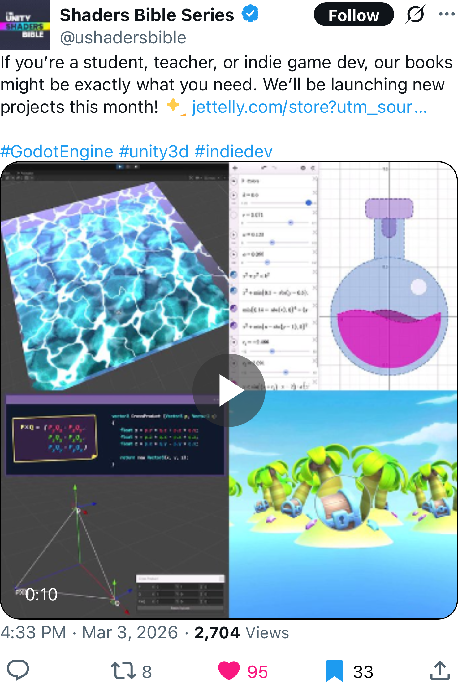If you’re a student, teacher, or indie game dev, our books might be exactly what you need. We’ll be launching new projects this month! https://jettelly.com/store?utm_source=homepage_buttons…